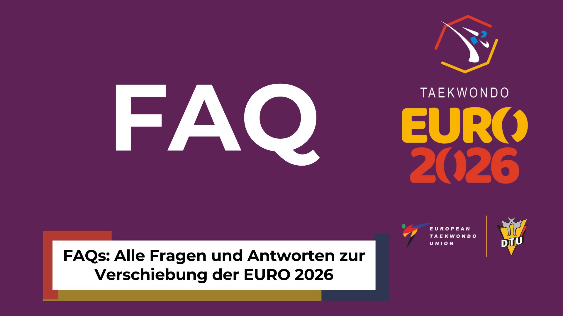 Die Taekwondo-EURO der Senioren 2026 (Zweikampf) wird verschoben und findet nun vom12. – 14. Mai 2026 im BMW Park München statt.